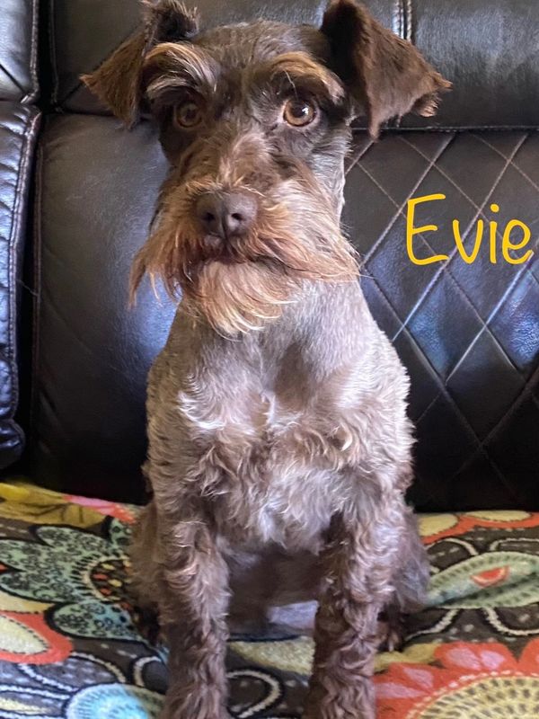 Evie is an AKC registered Liver Roan Schnauzer. She has a beautiful dark liver roan coat. She has a very laid back and loving personality. Evie measures approximately 12 inches at the shoulder.