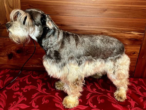 Bex is an AKC registered White Chocolate Schnauzer. He has a laid back personality and is eager to please. He measures approximately 11 inches at shoulder.