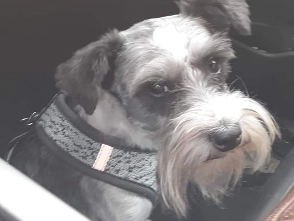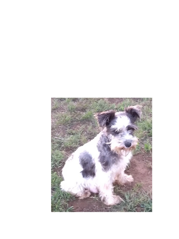 Snow is a Black and White Parti Schnauzer. She is very loving and eager to please.