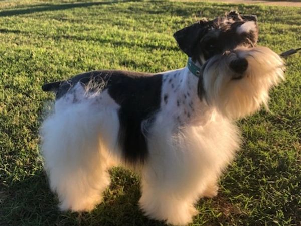 Ryker is an AKC registered Black and White Parti Schnauzer. He has a laid back personality and enjoys hanging out with anyone who offers attention. He measures approximately 11 inches at shoulder.
